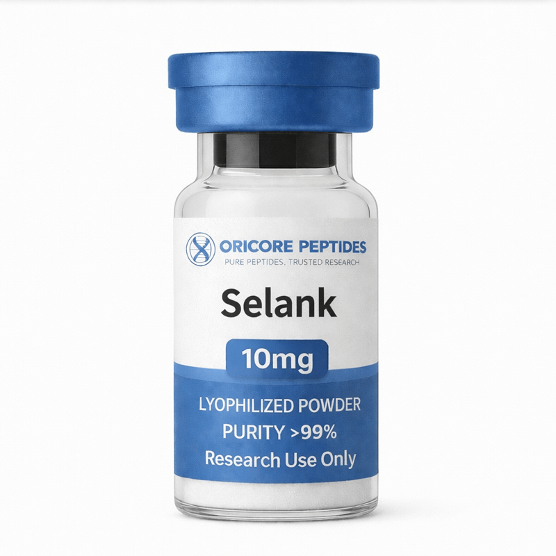 Selank is a synthetic nootropic and anxiolytic peptide derived from the naturally occurring Tuftsin peptide, which plays a role in immune regulation. Developed as an alternative to traditional anti-anxiety medications, Selank is designed to reduce stress, improve focus, and enhance cognitive function without the sedative effects of benzodiazepines.